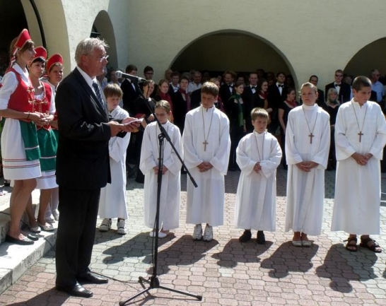 Az itt jelenlévők mindannyian tudják, hogy a kenyér a szó valóságos és átvitt értelmében is mennyire fontos. Jelenti a testi és szellemi, a hitbéli táplálékot, s jelenti az alkotás lehetőségét biztosító, értéket teremtő és biztonságot adó munkát is! Ma e hármas jelentés egyike-másika hiányzik. Hiszem, hogy megerősödött öntudatunk és nemzettudatunk átsegíti országunkat a jelen nehézségein.