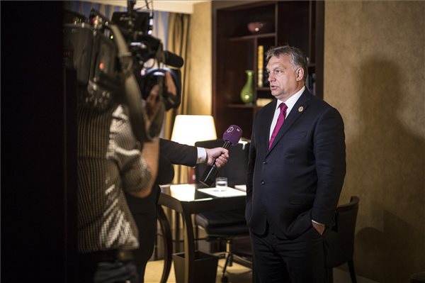 Orbán Viktor miniszterelnök nyilatkozik kínai programja végén a magyar közmédia stábjának Pekingben 2017. május 15-én. (MTI Fotó: Miniszterelnöki Sajtóiroda / Szecsődi Balázs)