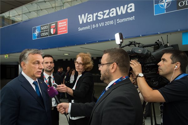A NATO-Oroszország megállapodás megsértése nélkül erősítik meg „a keleti szárny" védelmét – szögezte le szombaton a magyar sajtónak nyilatkozva Orbán Viktor miniszterelnök, miután részt vett az Észak-atlanti Tanács kétnapos, a varsói NATO-csúcson tartott tanácskozásán. A kormányfő arról is szólt: magyar kezdeményezésre a NATO is segítségül szolgál a migráció elleni küzdelemben.