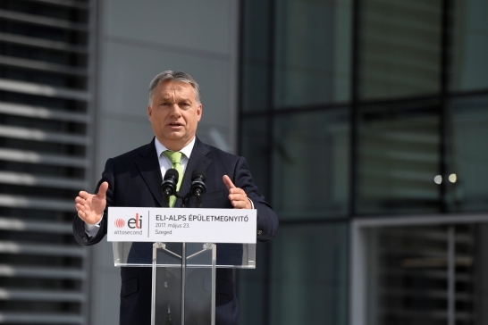 Orbán Viktor miniszterelnök az ELI-ALPS, a szegedi lézerkutató-központ épületmegnyitó ünnepségén mondott beszédet Szegeden (MTI Fotók: Koszticsák Szilárd)