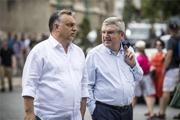 Munkaebéden látta vendégül Orbán Viktor miniszterelnök Thomas Bachot, a Nemzetközi Olimpiai Bizottság (NOB) elnökét vasárnap Budapesten – tájékoztatta az MTI-t Havasi Bertalan, a Miniszterelnöki Sajtóiroda vezetője. A NOB vezetője a megbeszélésen elismerését fejezte ki Magyarországnak a FINA vizes világbajnokság magas színvonalú megrendezéséért – közölte a sajtófőnök.