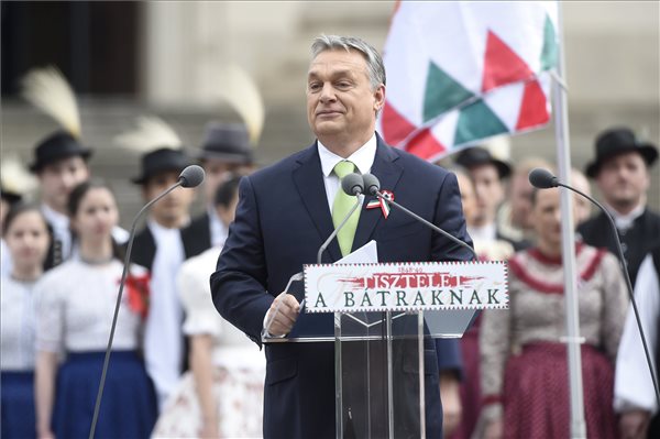 Orbán Viktor úgy fogalmazott: 2061 évvel ezelőtt ezen a napon egy merénylet rázta meg az ókori Rómát, 1848 tavaszán forradalmak törtek ki, és most is a lázadás állapotában vannak Európa népei.