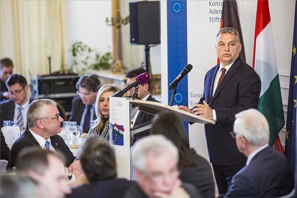 Orbán Viktor miniszterelnök előadást tart az Antall József Tudásközpont és a Konrad Adenauer Alapítvány rendezvényén a Konrad Adenauer Alapítvány (KAS) brüsszeli székházában 2017. január 26-án. (MTI Fotó: Miniszterelnöki Sajtóiroda / Szecsődi Balázs)