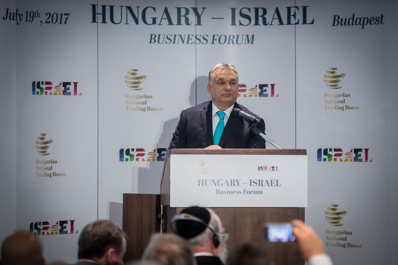Orbán Viktor miniszterelnök beszédet mond az izraeli miniszterelnök, Benjámin Netanjahu budapesti látogatása kapcsán tartott magyar-izraeli üzleti fórumon a Ritz-Carlton Budapest szállodában 2017. július 19-én. (Fotó: Botár Gergely/kormany.hu)