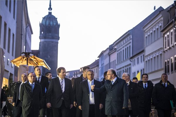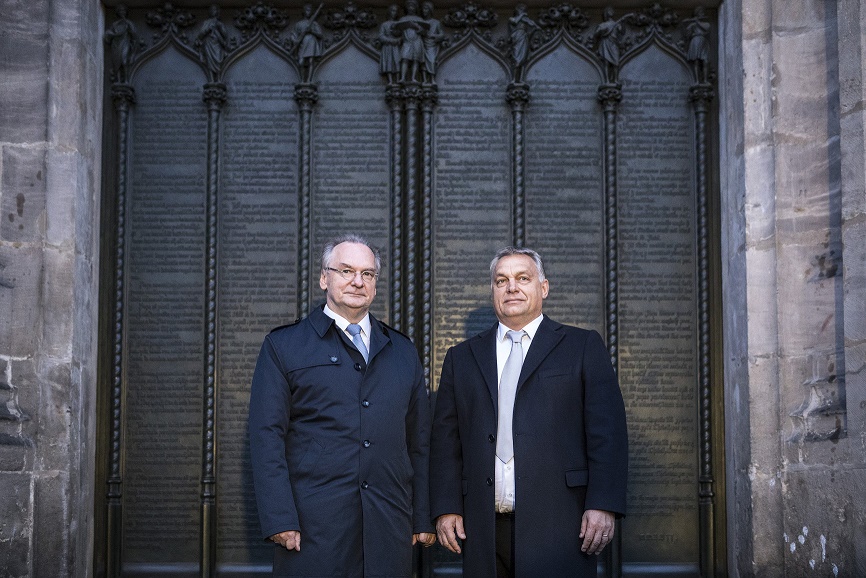 Orbán Viktort Reiner Haseloff, Szász-Anhalt tartomány miniszterelnöke fogadta a reformáció bölcsőjeként számon tartott németországi városban, majd együtt megtekintették a Luther Házat, valamint a reformáció 500. évfordulója alkalmából rendezett „Luther! 95 kincs-95 ember” című kiállítást.
