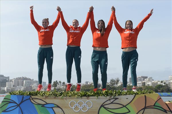 Orbán Viktor a riói kajak-kenu pályán nézte meg a női négyes győzelmét.