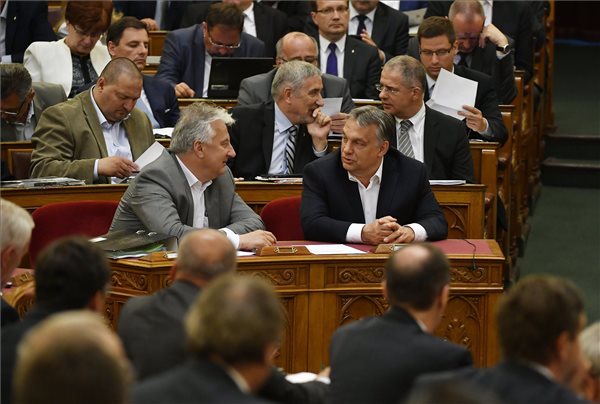Középen Orbán Viktor miniszterelnök (j) és Semjén Zsolt nemzetpolitikáért felelős miniszterelnök-helyettes (b) az Országgyűlés plenáris ülésén 2017. június 12-én. (MTI Fotó: Illyés Tibor)