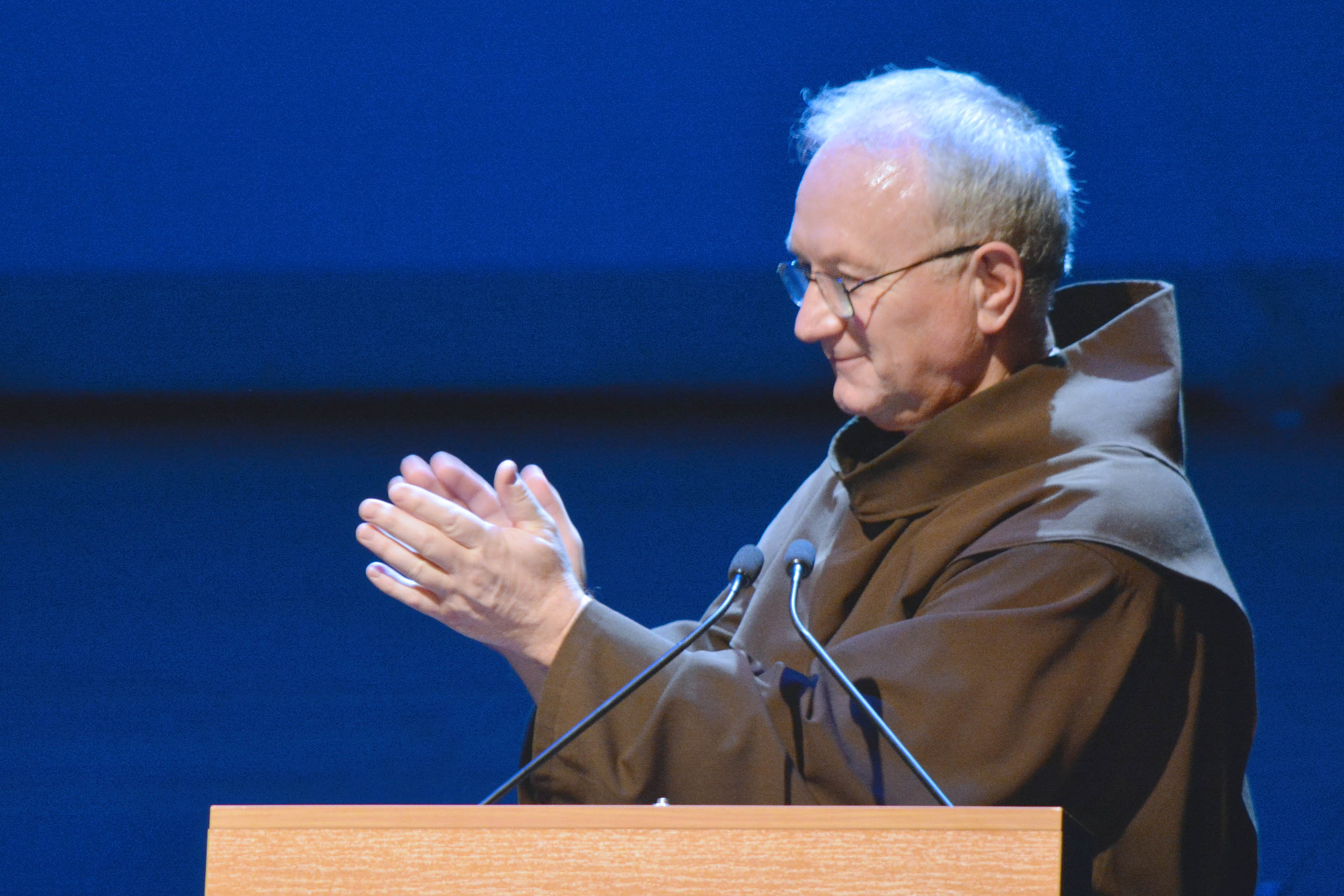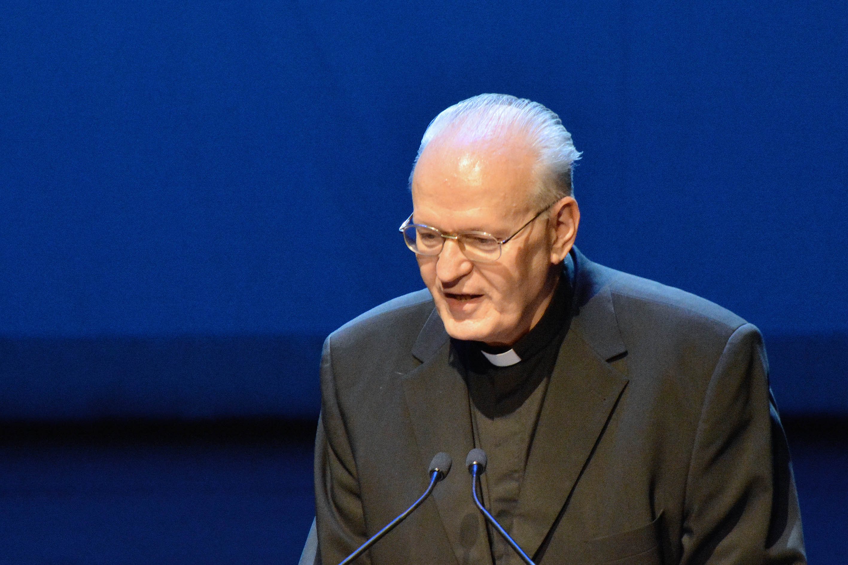 Tokár Imre P. János, a Katolikus Pedagógiai Intézet vezetője beszél az intézet fennállásának 20. évfordulója alkalmából rendezett gálaműsoron (Fotó: Váli Miklós)