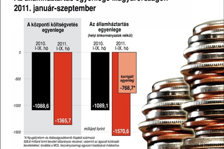 Az államháztartás első kilenc havi hiánya 1.570,6 milliárd forint volt, amely a módosított éves előirányzat 132,6 százalékát tette ki. Szeptemberben 25,9 milliárd forintos deficitet mutatott az államháztartás pénzügyi mérlege.