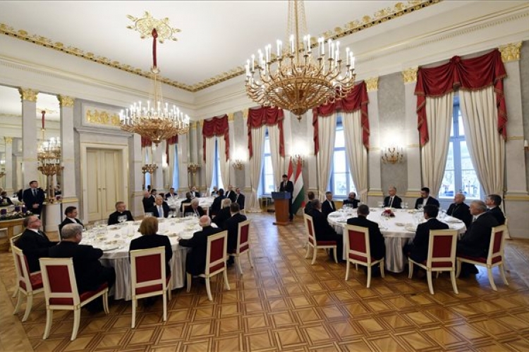 Áder János köztársasági elnök (k) beszédet mond a határon túli egyházi vezetők tiszteletére adott díszebéden a Sándor-palota Tükörtermében 2017. december 4-én. MTI Fotó: Illyés Tibor