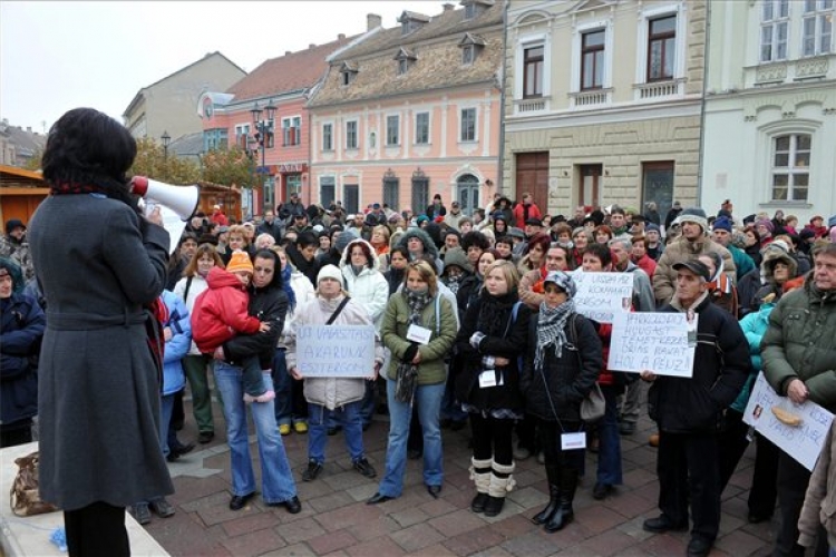 A tüntetés szervezője, Babai Angéla az MTI-nek elmondta: szülőként felháborította, hogy a volt és a jelenlegi polgármester hatalmi harca miatt veszélybe került a gyermekek étkeztetése, ezért az egyik közösségi oldalon hirdette meg, hogy aki elégedetlen a városvezetéssel, száraz kiflivel menjen tüntetni a városháza elé. Egyéni kezdeményezését semmilyen politikai szervezettel nem egyeztette - tette hozzá.