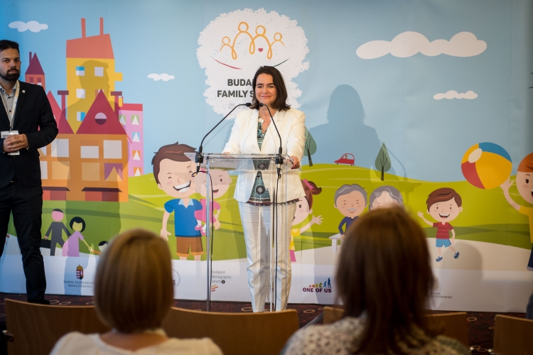 Novák Katalin előadásában úgy fogalmazott, a kormány nem adja fel családbarát, családorientált politikáját, és mindig ezeket az értékeket fogja képviselni mind nemzeti, mind pedig nemzetközi szinten.