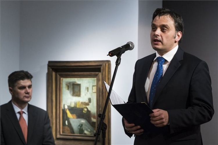 Latorcai Csaba, a Miniszterelnökség társadalmi és örökségvédelmi ügyekért, valamint kiemelt kulturális beruházásokért felelős helyettes államtitkára beszédet mond a Vásárhelyi művészélet 1900-1990 című kiállítás megnyitóján a fővárosi Várkert Bazárban 2018. február 8-án. (MTI Fotó: Mónus Márton)