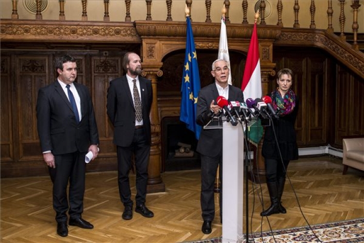 Balog Zoltán, az emberi erőforrások minisztere sajtótájékoztatót tart a Nemzeti Pedagógus Karral és szakmai szervezetekkel folytatott tárgyalása után az Emberi Erőforrások Minisztériumában 2016. január 23-án. Köznevelési kerekasztal alakul – jelentette be a miniszter. Mellette Palkovics László felsőoktatásért felelős államtitkár, Horváth Péter, a Nemzeti Pedagógus Kar elnöke és Czunyiné Bertalan Judit köznevelésért felelős államtitkár. (MTI Fotó: Marjai János)