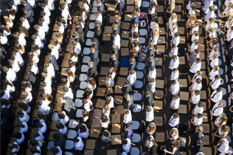 Diákok a baptista iskolák országos tanévnyitó ünnepségén a budapesti Kőrösi Csoma Sándor Két Tanítási Nyelvű Baptista Gimnáziumban 2016. augusztus 29-én. (MTI Fotó: Mohai Balázs)
