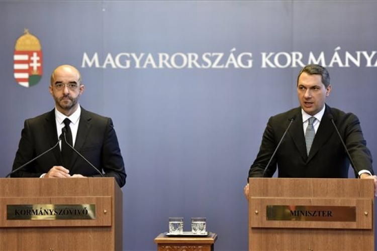 Lázár János, a Miniszterelnökséget vezető miniszter szokásos heti sajtótájékoztatóját tartja az Országházban 2016. december 8-án. Mellette Kovács Zoltán kormányszóvivő. (MTI Fotó: Máthé Zoltán)