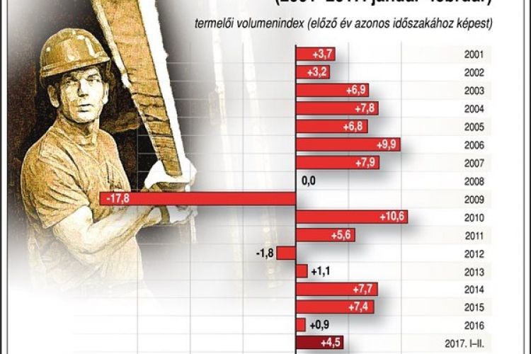 A tavalyi 0,9 százalékos növekedés után, 2017-ben lendületes bővülés kezdődött az iparban, a nemzetgazdaságban döntő súlyt képviselő feldolgozóipar 2,7 százalékkal nőtt, a csekély súlyú bányászat termelése 6,2 százalékkal, az energiaipar kibocsátása 1,7 százalékkal emelkedett az év második hónapjában – közölte a Nemzetgazdasági Minisztérium (NGM) a Központi Statisztikai Hivatal (KSH) adataira reagálva.