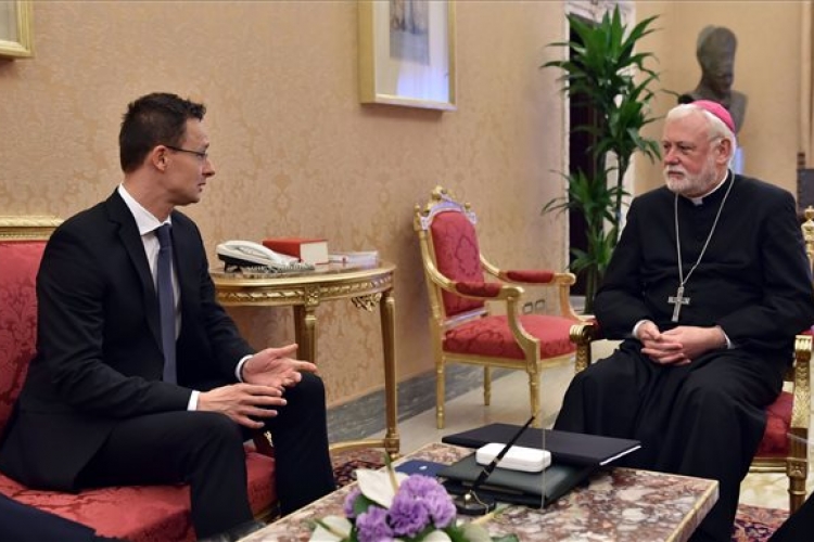 Magyarország a jövőben is erőteljes szerepet fog játszani a kereszténység és a világban élő keresztény közösségek megvédésében – hangsúlyozta Szijjártó Péter külgazdasági és külügyminiszter Paul Richard Gallagher szentszéki külügyminiszterrel a Vatikánban pénteken folytatott megbeszélésén.