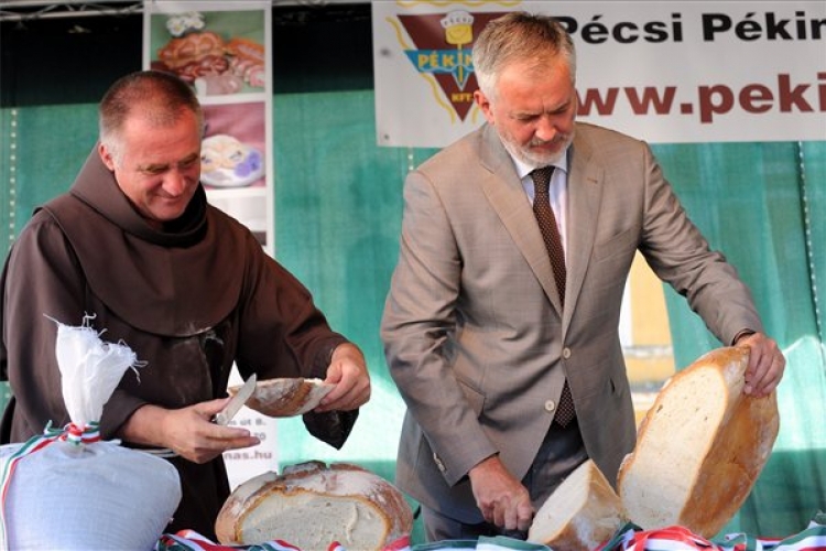 Az emberi jóságra hívta fel a figyelmet Böjte Csaba ferences rendi szerzetes a Magyarok kenyerének megszegése és az állami ünnepség alkalmából tartott városi rendezvényen hétfőn Pécsen. „Időről időre azt halljuk, mennyi rossz ember van szerte a Kárpát-medencében. Ha viszont valaki tesz valami jót, azt vesszük észre, hogy körülötte jó emberek bújnak elő a földből. Mi sem tudnánk 2300 gyermeknek ételt adni nap mint nap, ha nem lennének körülöttünk jó emberek. Szent István királyunk sem tudta volna sikerre vinni az államalapítást, ha nem segítik a jó ügyeket körülötte" – mondta Böjte Csaba, a Dévai Szent Ferenc Alapítvány vezetője. Az alapítványnak a magyarok kenyere program során tizenöt tonnányi lisztet juttatnak el. „Tavaly négy, idén már hét különböző országból érkezett hozzánk búza; az idei mennyiség az alapítvány féléves szükségletét fedezi" – mondta Korinek László, a magyarok kenyere akció ötletgazdája. Mindez úgy jöhetett létre, mondta, hogy idén több mint kétszer annyi búza érkezett Baranyába a Kárpát-medence minden szegletéből, mint egy évvel ezelőtt.