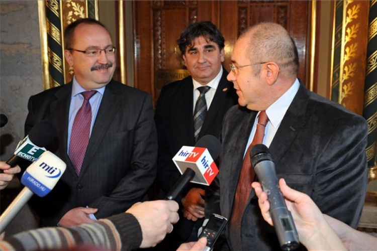 Németh Zsolt ezt arra reagálva mondta, hogy a szerb parlament hétfő délelőtt elfogadta a rehabilitációs törvényt, amely orvosolja a korábban elfogadott kárpótlási törvény azon hibáját, hogy kollektív bűnösség elvét vette alapul, ami lényegében a magyarokat is érintette. A külügyi államtitkár elismerését fejezte ki Szerbiának. Ezzel a lépésével Szerbia letette az alapját annak, hogy Magyarország és Szerbia között olyan megbékélési folyamat bontakozhasson ki, amire évek óta várnak a határ mindkét oldalán a magyarok - hangzott el. Elismerését fejezte ki Vajdasági Magyar Szövetségnek (VMSZ), elnökének Pásztor Istvánnak és a vajdasági magyar közösségnek. Határozott kiállásuk a magyar érdekek mellett magáért beszél és egyértelművé teszi, hogy a nemzeti, etnikai alapon szerveződő pártoknak, politikai vonalvezetésüknek van létjogosultságuk - fogalmazott. Remélem, hogy nagyon szégyellni fogják magukat azok a magyarok, akik a kárpótlási törvényre igennel szavaztak néhány hónappal ezelőtt - jegyezte meg, és reményét fejezte ki, hogy a határon túli magyarok körébe is el fog jutni, hogy a határozott nemzeti érdekérvényesítés meghozza eredményét. Elismerését fejezte ki - mint mondta - a magyar politika egészének nemzeti együttműködés rendszerének, amelybe beleértette a magyarországi ellenzéket és a határon túli magyar pártokat is. Utóbbiak a Magyar Állandó Értekezleten egyértelművé tették, hogy támogatják a vajdasági magyarokat. Ez nagyon jó példa arra, hogy nem feltétlenül kell a mindenkori magyar kormánynak a nemzeti önfeladás politikáját választania - fűzte hozzá. Lehet egyszerre támogatni egy szomszédos ország integrációs erőfeszítéseit, és lehet érvényesíteni a nemzeti érdekeket is. Ennek december 5-én különösen nagy jelentősége van, hiszen hét éve volt a kettős állampolgárságról szóló gyászos népszavazás. Talán december 5. nem csak a nemzeti önfeladásnak lesz a dátuma, hanem a nemzeti érdekérvényesítés naptárába is bekerül ez a nap - emelte ki. Pásztor István, VMSZ elnöke kiemelte, hogy az ügyben teljes nemzeti konszenzus alakult ki és bejelentette, hogy egy olyan jogsegély szolgálatot indítanak el, amely lehetővé teszi: akik a negyvenes években a II.világháború kárvallottjai voltak, ügyeiket zökkenőmentesen és hatékonyan intézhessék. December 5-e számára, mától sokak számára egy másfajta olvasatot is kap, az együttes nemzeti erőfeszítés olvasatát - vélte. Köszönetet mondott Orbán Viktornak, Semjén Zsoltnak, Németh Zsoltnak azért az erőfeszítésekért, amit az elmúlt 1-1,5 hónapban kifejtettek. Szintén köszönetét fejezte ki a parlamenti pártoknak, és a kárpát-medencei magyar szervezeteknek. Kitért arra is, hogy a parlament elfogadta a rendőrségi törvény módosítását is, amely lehetővé teszi, hogy a kettős állampolgárokat is alkalmazhasson a szerb rendőrség. Ezt példaértékű döntésnek minősítette. A vajdasági magyarok behívására vonatkozó kérdésre azt mondta, hogy nem kell behívóktól tartani, a meglévő adatokat egyeztetik. Arra kért minden érintettet, hogy tegyenek eleget neki, nem katonai behívókról van szó. Németh Zsolt Szerbia tagjelölti esélyeiről azt mondta, hogy az külügyi tanács hétfőn foglalkozik a kérdéssel, az Európai Tanács pedig a hét második felében. A bővítési csomag egészéről nagyon komoly viták várhatóak - jelezte, hozzátéve: Magyarország támogatja az egész bővítési csomagot. A felvidéki magyarok állampolgárságának elvételére vonatkozó kérdésre azt mondta, hogy a leghatározottabban elítélik a szlovák állampolgárságtól való megfosztásukat. Ugyanakkor konkrét számokkal nem rendelkeznek arról, hogy hány ilyen eset van. Kiemelte: támogatnak minden felvidéki magyart abban, hogy minden belső jogorvoslati utat kihasználjanak. Van reális esélye a belső jogorvoslati utak kihasználásának - vélte, hozzátéve: egyértelmű diszkriminációról van szó Szlovákia jogrendszerén belül. Kitért arra is, hogy az európai parlamenti magyar képviselők az Európai Bizottsághoz fordultak, az EBESZ és az Európai Tanács fórumait is igénybe kívánják venni. Azt tartják sajnálatosnak, hogy a választási kampánynak újból a felvidéki magyarokat kívánja koncként odadobni a szlovák nacionalista politika - fogalmazott. |