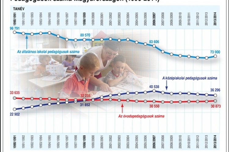 A most záruló tanévben a pedagógusok számának évek óta tartó csökkenése háromszázalékos növekedésre váltott – derül ki a Központi Statisztikai Hivatal Magyarország, 2013 című kiadványából, amely szerint az országban folyamatosan nő az emberek iskolai végzettsége.
