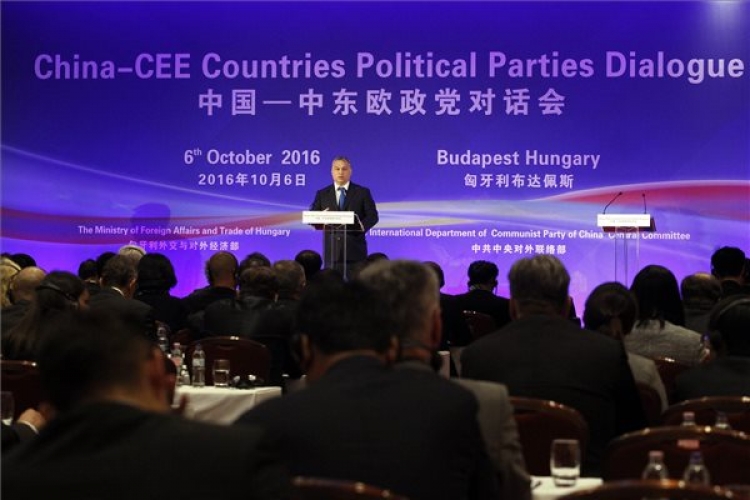 Orbán Viktor miniszterelnök beszédet mond a Kína - Közép- és Kelet-Európa Politikai Pártok Dialógusa fórumon a budapesti Intercontinental szállóban 2016. október 6-án. (MTI Fotó: Szigetváry Zsolt)