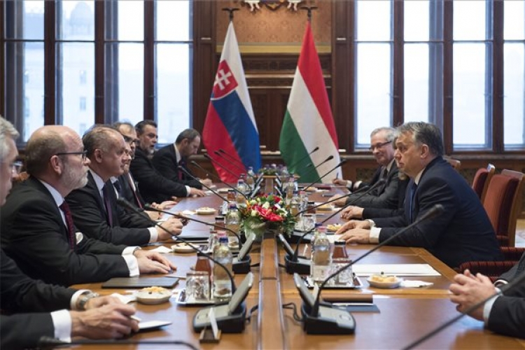 Orbán Viktor miniszterelnök és Andrej Kiska szlovák államfő (b3) találkozója az Országházban 2016. december 5-én. (MTI Fotó: Miniszterelnöki Sajtóiroda/Árvai Károly)
