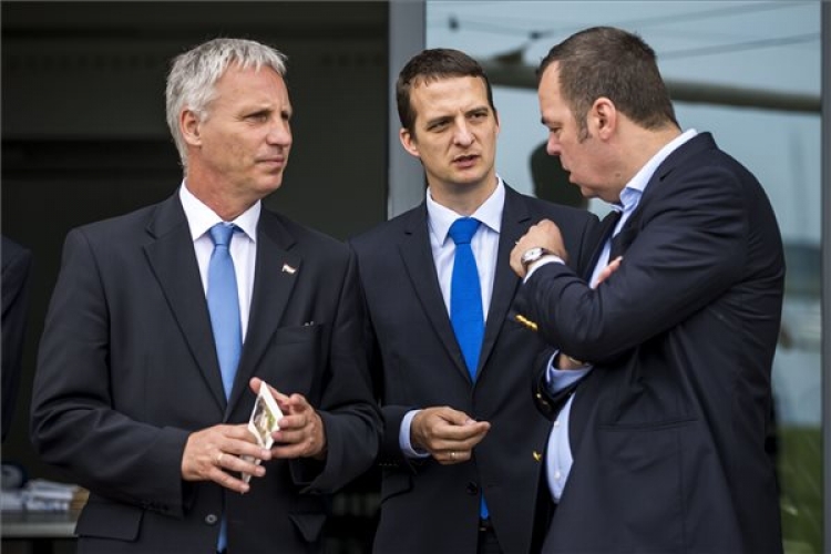 Soltész Miklós, az Emberi Erőforrások Minisztériumának egyházi, nemzetiségi és civil társadalmi kapcsolattartásért felelős államtitkára, Deák Csaba, a Velencei-tavi Vízi Sportiskola üzemeltetését végző Pro Rekreatione Közhasznú Nonprofit Kft. ügyvezetője és L. Simon László, a Miniszterelnökség kulturális örökségvédelemért és kiemelt kulturális beruházásokért felelős államtitkára a Velencei-tavi vízisport- és turisztikai évadnyitón Agárdon 2016. május 29-én.