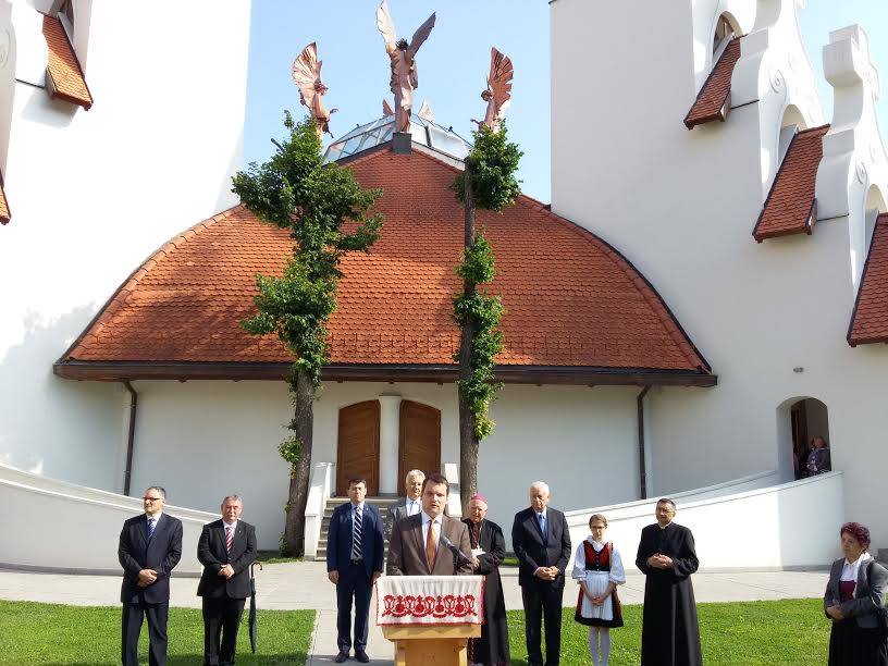 Semjén Zsolt nemzetpolitikáért felelős miniszterelnök-helyettes ünnepi beszédet mond a Szabadtéri Szent László-kiállítás megnyitóján az erdélyi Csíkszeredán 2017. június 2-án. MTI Fotó: Veres Nándor