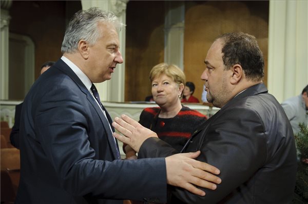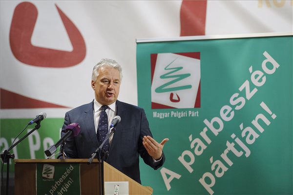 A magyar kormányt képviselő Semjén Zsolt miniszterelnök-helyettes, a KDNP elnöke, Szili Katalin miniszterelnöki megbízott és Biró Zsolt, a Magyar Polgári Párt (MPP) elnöke (b-j) a párt országos tanácsának ülésén a partiumi Szatmárnémetiben 2017. február 11-én. (MTI Fotó: Czeglédi Zsolt)