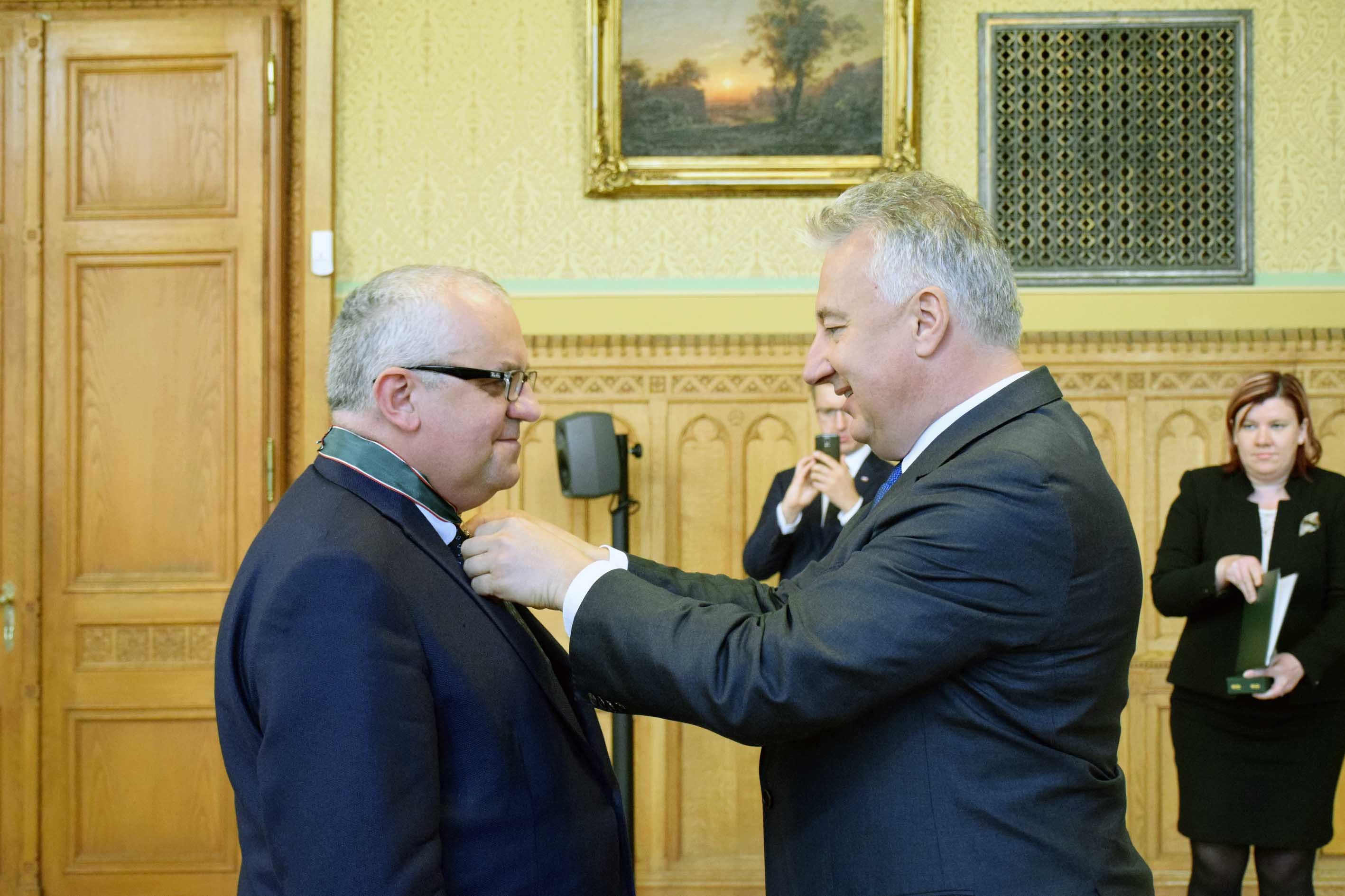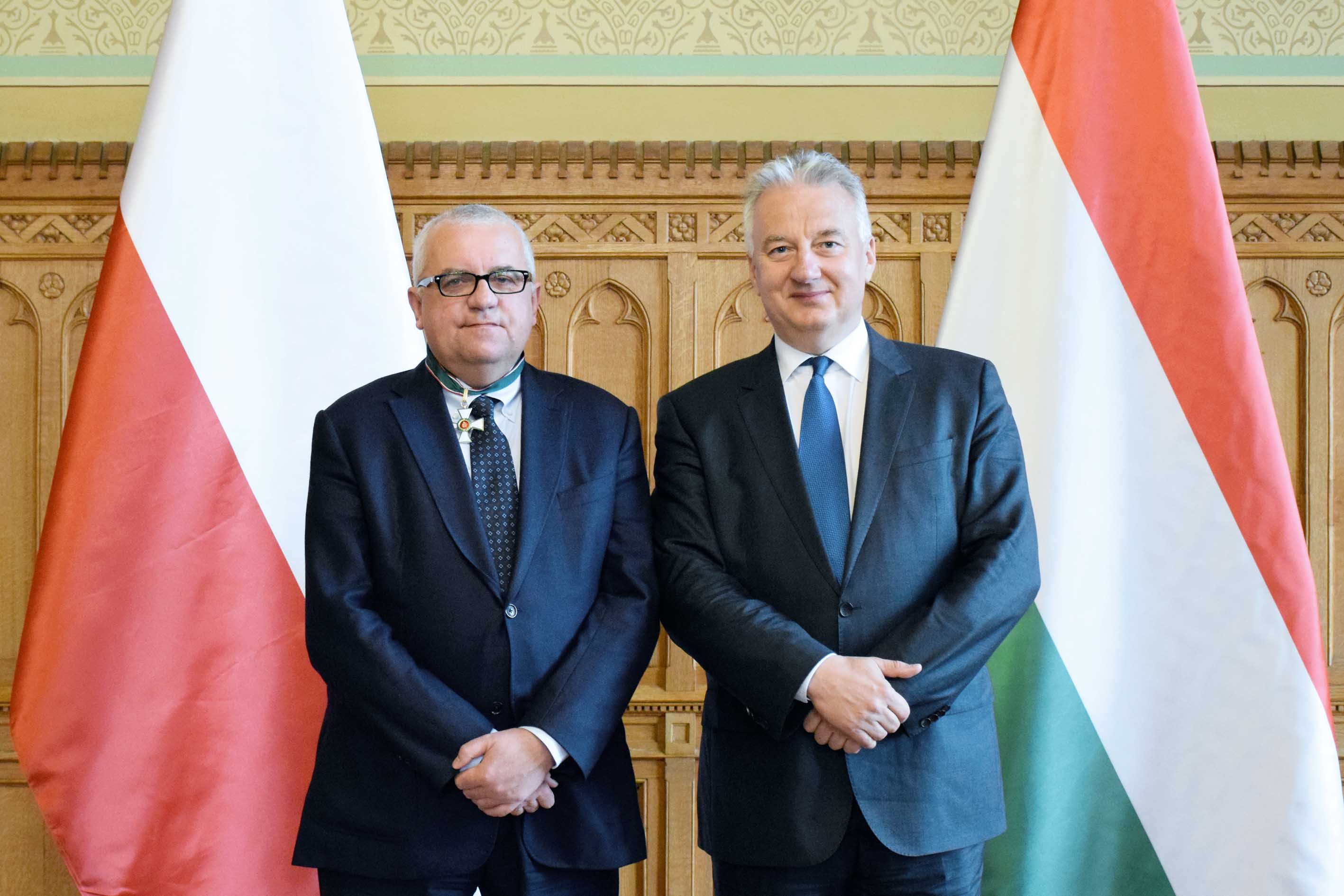 A Magyar Érdemrend középkeresztje kitüntetést adta át Semjén Zsolt miniszterelnök-helyettes csütörtökön az Országházban Adam Józef Lipinskinek, a lengyel Miniszterelnöki Hivatal parlamenti államtitkárának, a Szejm képviselőjének, a Jog és Igazságosság Párt alelnökének a Szolidaritás élharcosaként határozott kiállása és a rendszerváltozást követő értékes és meghatározó jelentőségű közéleti tevékenysége elismeréseként.