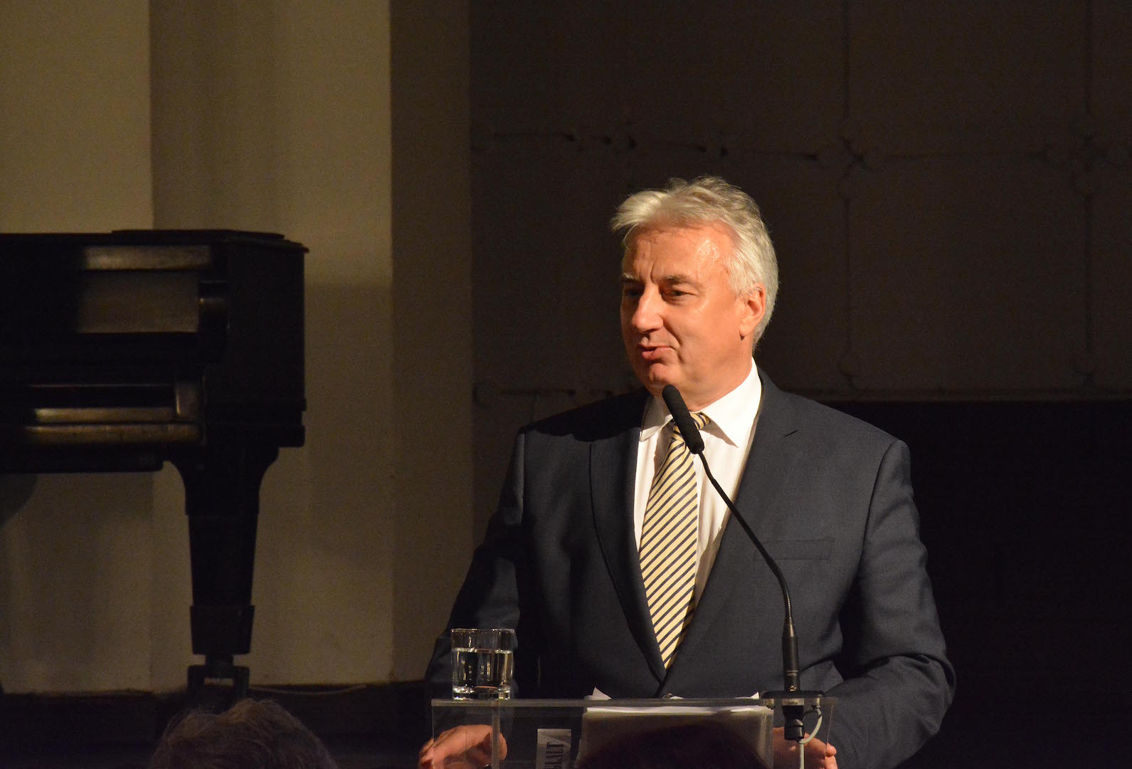Semjén Zsolt miniszterelnök-helyettes, Kereszténydemokrata Néppárt elnöke beszédet mond Zalaegerszegen, a nemzeti konzultációról tartott lakossági fórumon 2017. október 24-én. (Fotó: Váli Miklós)