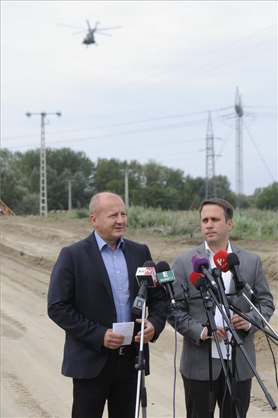 Simicskó István kereszténydemokrata honvédelmi miniszter és Dömötör Csaba, a Miniszterelnöki Kabinetiroda parlamenti államtitkára a brüsszeli kvótacsomag biztonsági kockázatairól tartott röszkei sajtótájékoztatójukon 2016. szeptember 21-én. (MTI Fotó: Kelemen Zoltán Gergely)