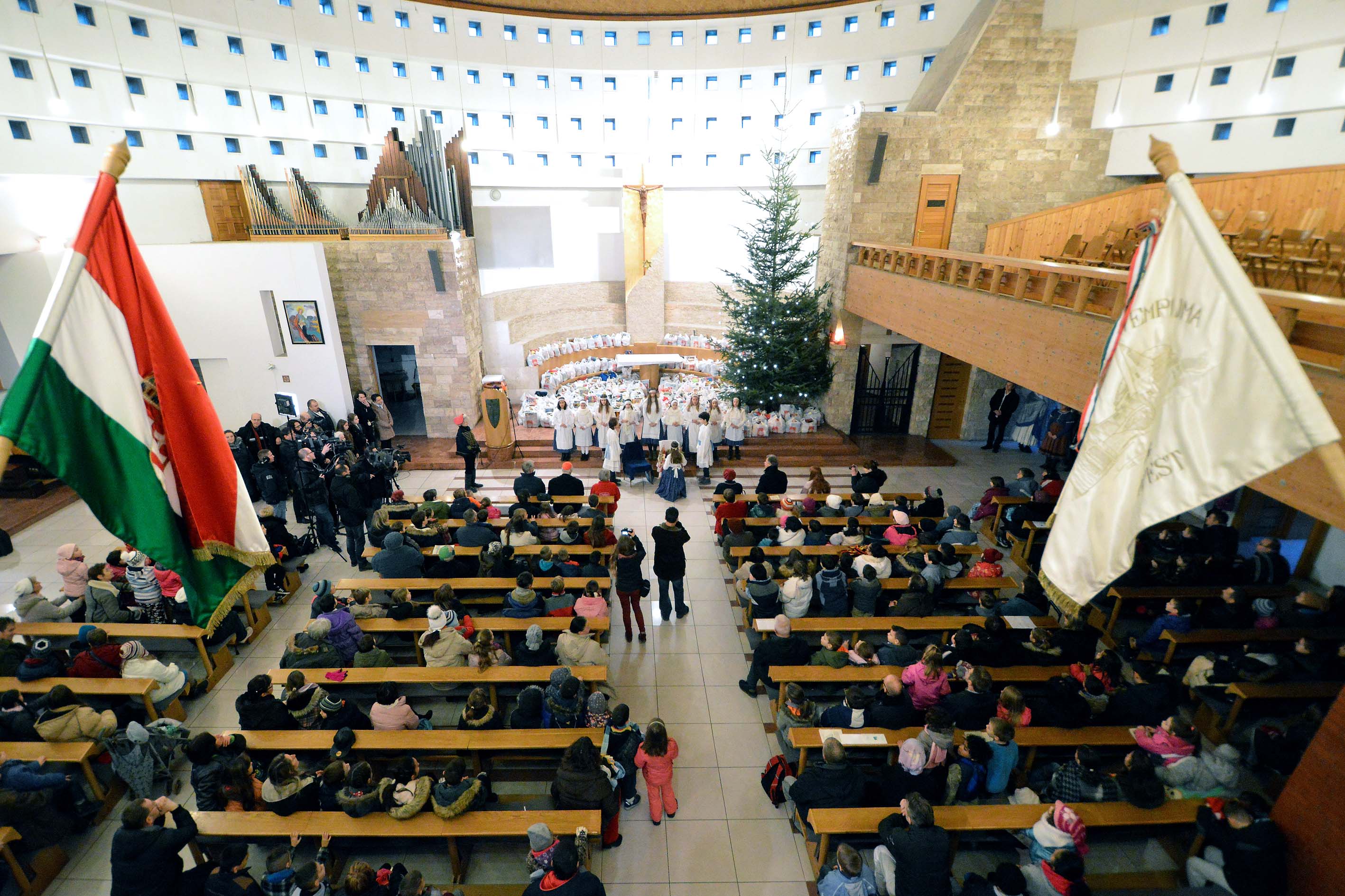 Kétszázötven rászoruló gyermeknek adott névre szóló karácsonyi ajándékcsomagot a Katolikus Karitász a budapesti Magyar Szentek Templomában 2016. december 22-én. (KDNP Fotó: Váli Miklós)