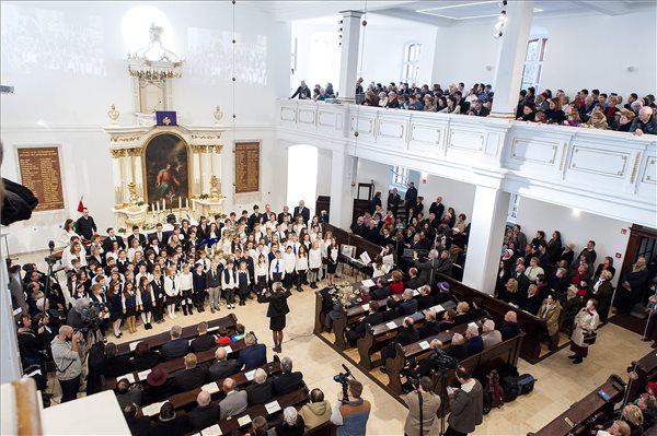 A felújított Öregtemplom átadása Győrben 2016. december 11-én. A templomot mintegy 300 millió forintból újították fel a kormány által 4,7 milliárd forinttal támogatott Insula Lutherana felújítási és bővítési projekt keretében. (MTI Fotó: Krizsán Csaba)