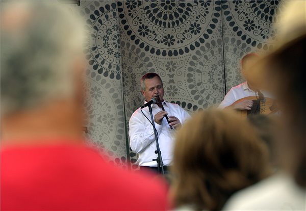 Hodorog András furulyás, a Népművészet mestere játszik a díjak átadásán a budai Várban 2016. augusztus 19-én. Az elismerést tíz alkotó vehette át a nemzeti ünnep alkalmából a Mesterségek Ünnepe rendezvénysorozat keretében. (MTI Fotó: Máthé Zoltán)